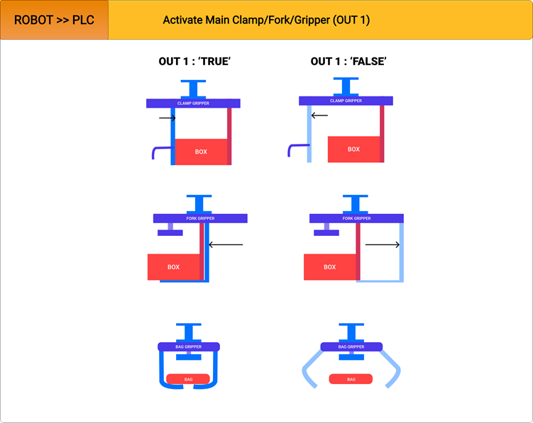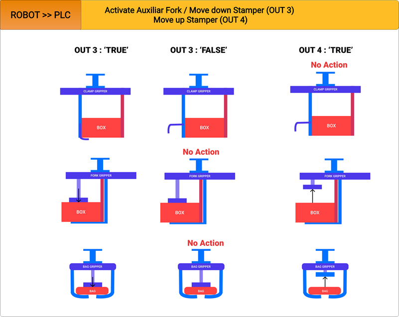 The latter will make it possible to generate stop points, where the robot will wait until it receives confirmation of the activation/deactivation of the various elements.
