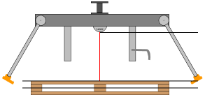 In this case the gripper integrates a measuring sensor, which indicates to the PLC the distance to the pallet. To make the measurement more reliable, the distance will be measured from 3 different points.