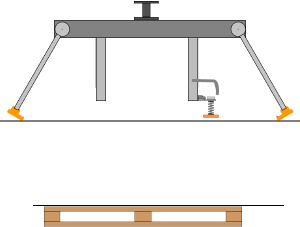 Detect the presence of a pallet (vacuum, contact sensor, photoelectric sensor, measurement sensor, etc.), pick it up and continue the cycle.