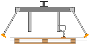 In this case the station lacks elements to lift the pales, and a measurement sensor, which indicates to the PLC the distance to the pallet.