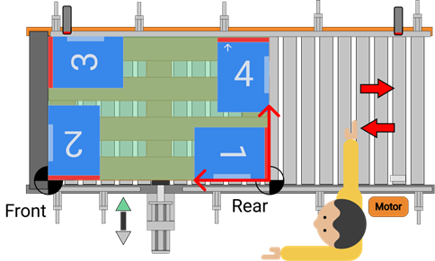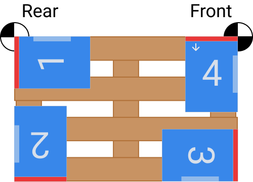The vector formed by Front and Rear, must be on one of the long sides of the pallet.
