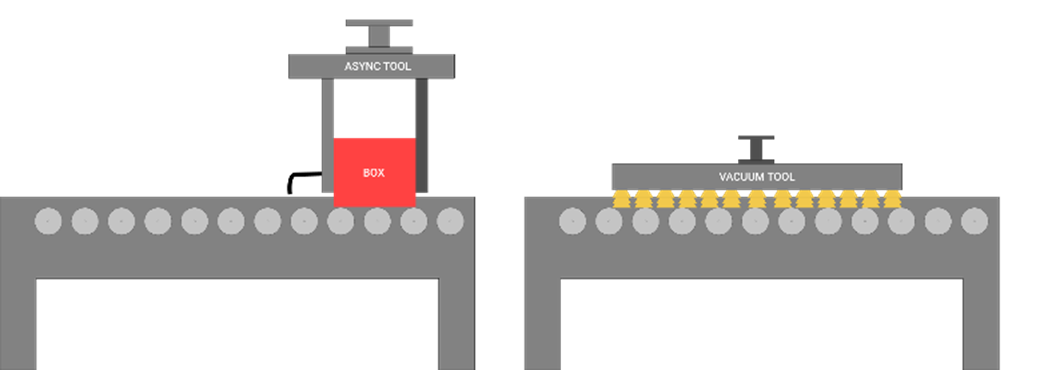 - Load the generated source code into the robot, and verify that the robot positions the 4 boxes on the corners of the pallet as the mosaic was designed.