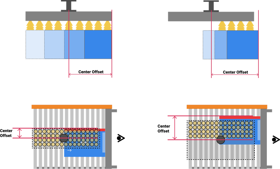 Clearance distance between the center of a vacuum gripper flange and a fixed reference (usually one of the pickup guides), at the pick coordinates. Indicated in millimeters.