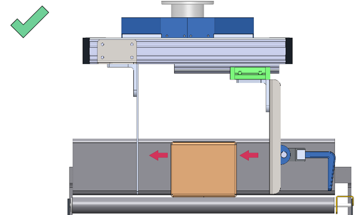 The alignment of the gripper must be precise. Since the approach of the gripper is made from the side to the pickup, and if we do not have it well adjusted, the fingers of the fork can collide by not accessing the slots, or with the products deposited on it.